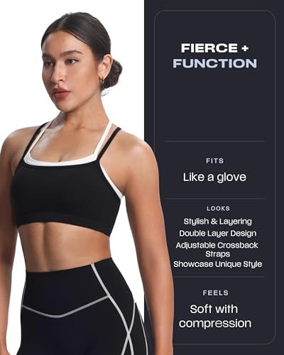Aoxjox Women’s Workout Sports Bras Takes Two Bra High Impact Training Fitness Running Yoga Crop Tank