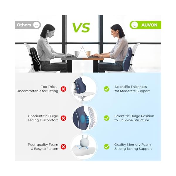 Patented Bulge for Lower Back Targeted Support: AUVON Team has collaborated with physical therapists to innovate ergonomic office desk accessories with an innovative precision support design. Based on ergonomic theories, the scientific position and thickness of the bulge can offer a natural fit to the lumbar spine structure to relieve lower back pain from long sitting