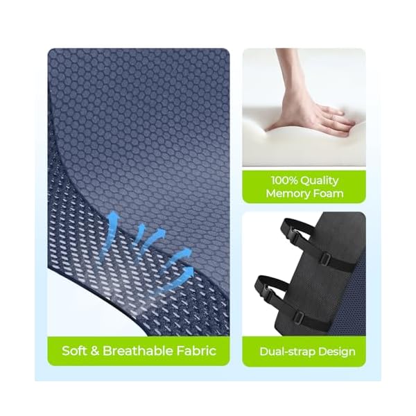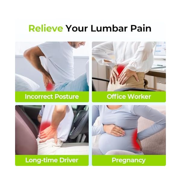 Ergonomic Zoning Design for Lumbar Comfort: This desk chair cushion is crafted with 4 ergonomic zones to cradle your back for long-sitting relief. The upper curved zone can fit your upper back with contoured comfort. The lower support zone is designed with high-density memory foam for targeted support. The wrap zone of both sides conforms to your lumbar for pressure distribution. There is also a pelvic support zone on the underside of this back support pillow
