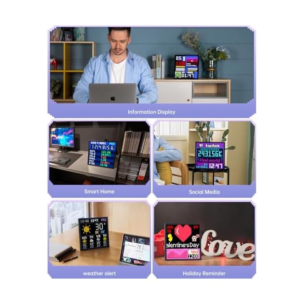 【Lighting Decoration & Display Customize】 You can use Pixoo-64 Decorate in any corner of your house, light up the hallway or brighten your room with the pixel art animations. You can customize the display to show a welcome message, sales event, health tips, or shop decoration.