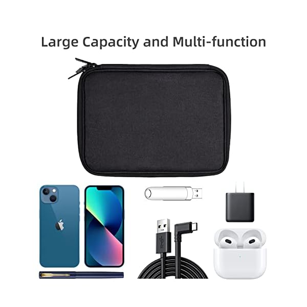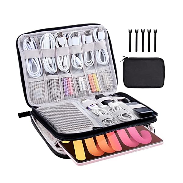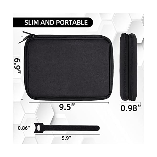 LARGE CAPACITY & ACCESSORIES – The tech organizer travel case is 9.8 x 6.9 x 1 inches, with an internal flat measurement of 9.3 x 6.3 inches, and weighs 6.6 oz. Includes 5 REUSABLE CABLE TIES to keep your travel case tidy (Cords and accessories not included)