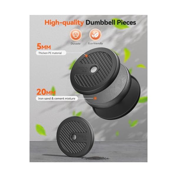 【Durable Materials】Environmentally dumbbell pieces exterior is made of high-quality PE materials, and the inside is mixed with iron, mud, and sand, which effectively prevents floor abrasion.