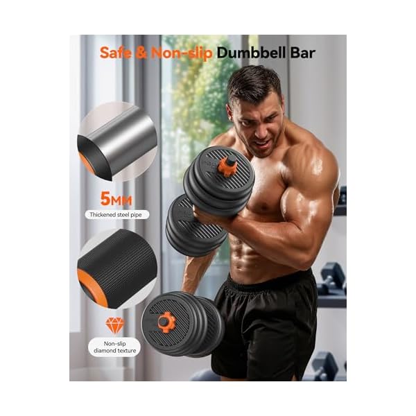【Non-slip Dumbbell Bar】The surface of the dumbbell bar is made of ABS environmentally material and attached to a non-slip texture, which strengthens the friction of the hand and helps you control the dumbbell better during exercise.