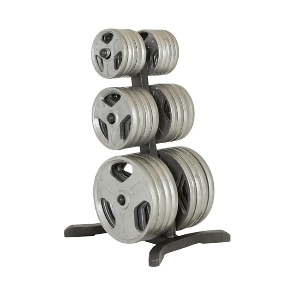 Maximize your workout space with the Fitness Reality X-Class Olympic Weight Tree. This weight rack is a must-have for any home gym or fitness center. It holds standard and Olympic weight plates, making it a versatile addition to your strength training routine. The rack’s sturdy construction ensures it can easily handle the weight of your plates, providing a reliable and durable storage solution for your weights. This weight rack has six storage posts for weights and two for 2″ wide bars. Weight plates and bars are not included in this plate rack.