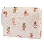 Floral Makeup Bag, Small Cosmetic Bag for Women Girls, Cute Cotton Makeup Bag, Quilted Makeup Bags, Flower Travel Toiletry Organizer Bag (White Bear)