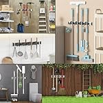NO-SLIDE GUARANTEE: 4 spring-loaded slots with rubber grips that hold tightly to tool handles to keep them firmly in place. And 4 hangers bear totally up to 40 pounds. You can use this rack to hold everything from brooms & mops to gardening & hardware tools