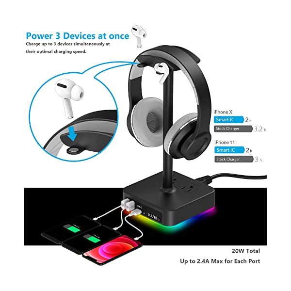 【What You Get】KAFRI Headphone dock / Power Strip / 1-Port USB-C Charger, 2 USB-A Chargers, 5ft / 1.5m detachable Power Cord , If there is any quality issue for this headphone rack or you are not happy with your purchase, please do not hesitate to contact us.