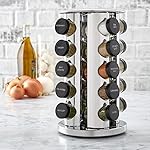 STYLISH STORAGE: the rotating, polished stainless steel rack keeps spices neat and easily accessible on countertops or in cabinets