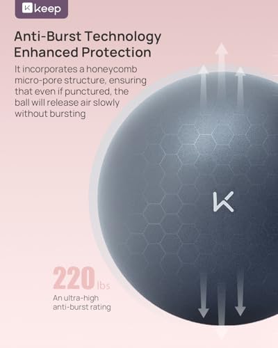 Anti-Bust & Worry-Free — The KEEP Fitness Ball features anti-burst technology with a honeycomb microporous foaming structure. It has passed strict explosion-proof test, with an ultra-high anti-burst rating of 1300 lbs. In the event of puncture by sharp objects, the ball deflates slowly rather than bursting, ensuring your safety is always protected