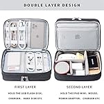 【DOUBLE LAYERS & WELL ORGANIZED】- This travel electronics organizer is designed with multiple pockets and various size of elastic bands providing great flexibility for organizing electronics accessories such as USB Cable Cord, Flash Drive, Wall Charger, SD Card, Hard Drive, Power Bank, Earbuds, Camera.A large zipper mesh pockets.