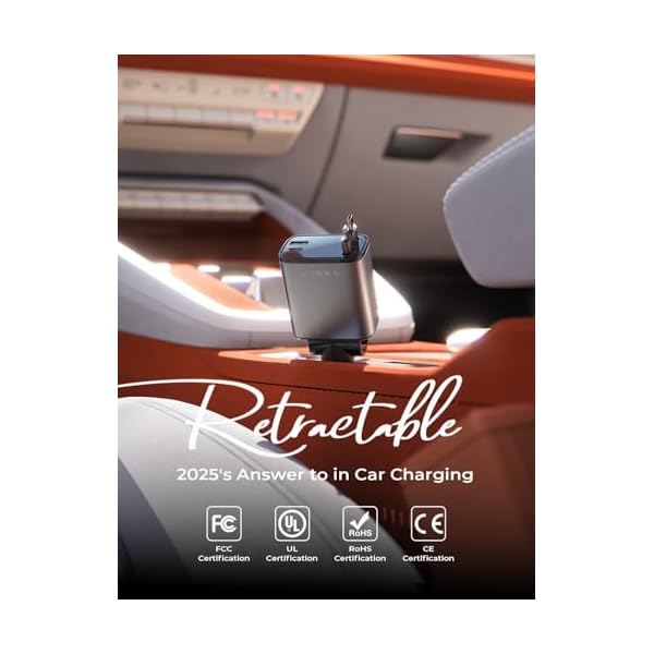 69W 4 Port Car Charger: Equipped With a 30W PD USB C Port, a 12W USB a Port, and Additional Charging Options, This Powerhouse Charges up to Four Devices Simultaneously. Ideal for Fast Charging the iPhone 16 Pro Max or Other Gadgets, Itโs Versatile Enough for Truck Accessories or Stylish Car Essentials. Its Smart Power Distribution Maintains High Speed Charging Across All Ports. Retract Instruction: Pull and Hold the Cable, Gently Extend 1 cm More, Then Release for Automatic Retraction