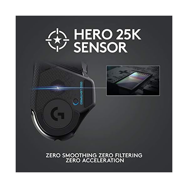 Hero 25K sensor through a software update from G HUB, this upgrade is free to all players: Our most advanced, with 1:1 tracking, 400plus ips, and 100 – 25,600 max dpi sensitivity plus zero smoothing, filtering, or acceleration
