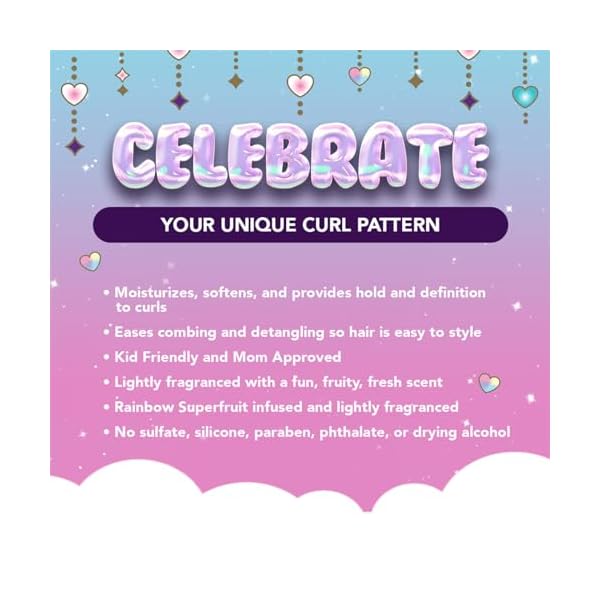 Rich, Butter Cream Formula: This curling cream’s nourishing natural ingredients include Rainbow Superfruit infused with raspberry, papaya, apple, and kiwi. This infusion helps moisturize, strengthen, and prevent breakage and allows your natural hair to represent the unique, divine, and magical person you are.