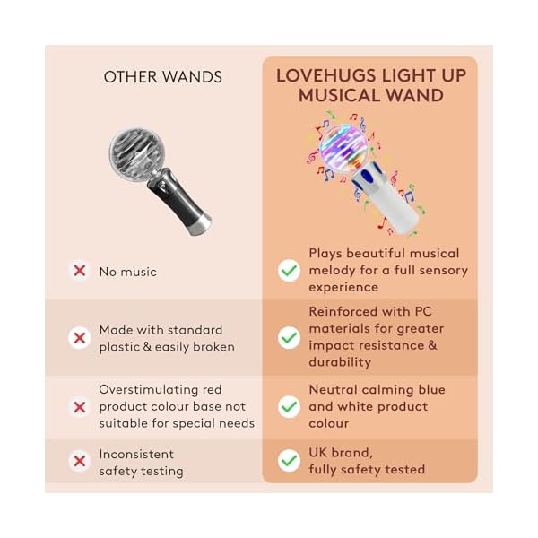 SUITABLE FOR CHILDREN OF ALL AGES & THOSE WITH SPECIAL NEEDS – At LoveHugs we have a history of producing toys for children with special needs. Our light up spinning wand is designed to be used by children of all ages and spectrum’s including babies, toddlers and older children, plus children with ADHD and autism.
