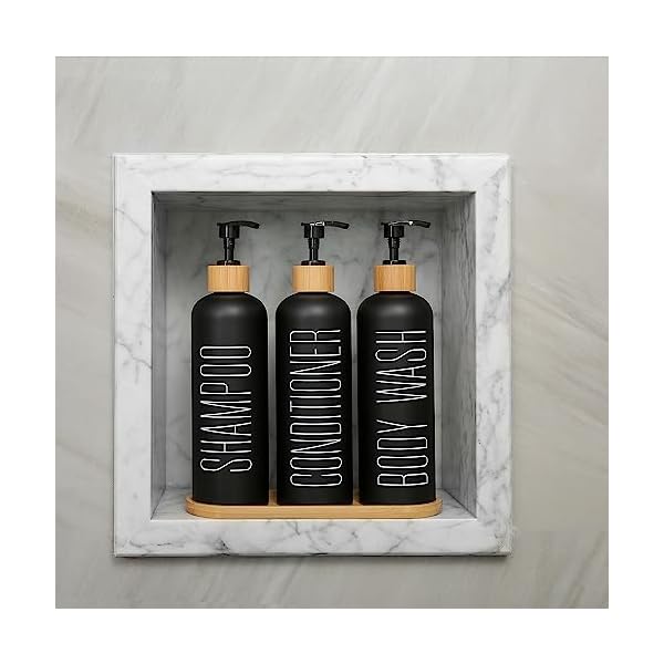 [Labelled Soap Dispenser] The shampoo and conditioner bottles come pre-labeled as “SHAMPOO”, “CONDITIONER” and “BODY WASH” to avoid confusion for anyone who uses them. This shampoo bottles refillable with pump is suitable for bathroom decor and is a guest room must haves.