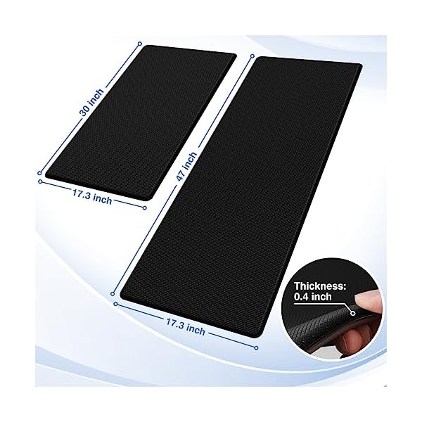StepRite Kitchen Mats, 2PCS Kitchen Rugs, Cushioned Anti Fatigue Kitchen Mats for Floor, Non-Slip Standing Desk Mat, Waterproof Kitchen Rug Set for Kitchen, Floor, Office, 17.3″x30″+17.3″x47″, Black