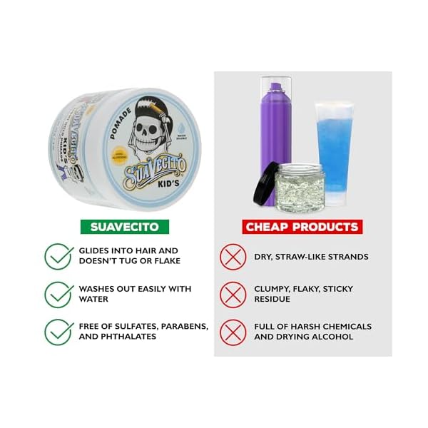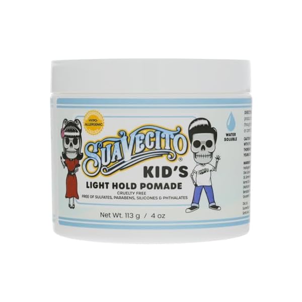 Suavecito Kid’s Pomade Calming Chamomile Scent Light Hold 4 oz. – Water Based Flake Free Hair Gel – Dermatologist-Tested, Hypoallergenic Formula – Free of Sulfates, Parabens, and Phthalates
