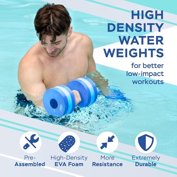 HIGH-DENSITY EVA FOAM: Constructed from premium high-density EVA foam; these water dumbbells are chlorine-resistant and dry quickly between uses; built to last, they will not deteriorate over time