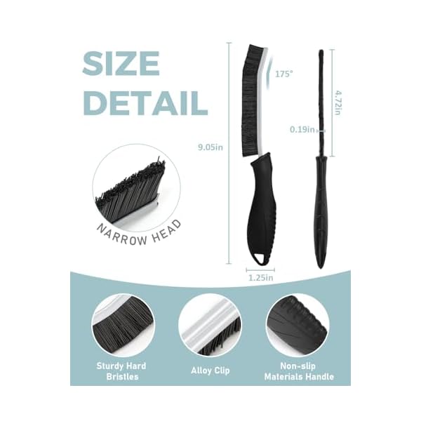 Multifunctional Brushes: Suit for cleaning hard to reach and tight spots spaces, windowsills, tile countertop grout lines, sink, corners, fans, shower stand, stove, fridge gaskets, furniture, bathroom tub, closet, door tracks, bird feeders, car, laundry room, housekeeping, etc