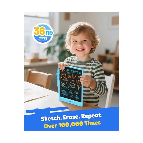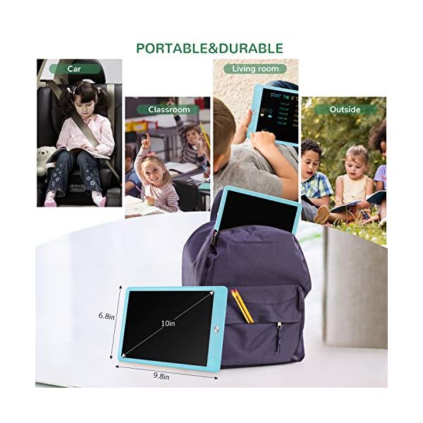 Free Child’s Imagination: The LCD writing tablet provides 10 inches of space for kid’s writing and drawing, free children’s imagination. The eye-protection colorful screen of doodle board provides a better painting experience, avoiding injury to a child’s eyes from long-term use
