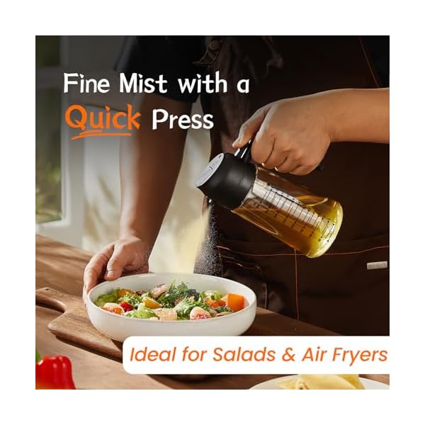 Dual Dispensing: This oil mister offers both spray and pour options for total control while cooking. It’s a versatile oil dispenser bottle spray and pour as needed to keep your kitchen clean, organized, and efficient.