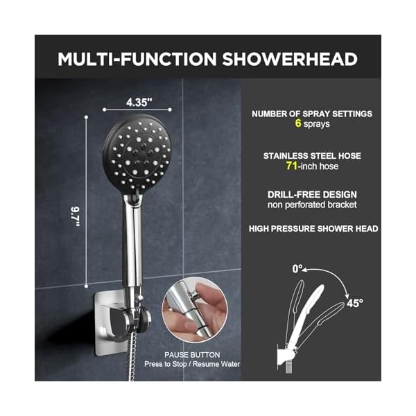 Adjustable Extension Arm: Customize your shower height and angle effortlessly — ideal for both tall and short users, making every shower tailored to your comfort. Tilt and turn with ease to find the perfect angle for your next shower.
