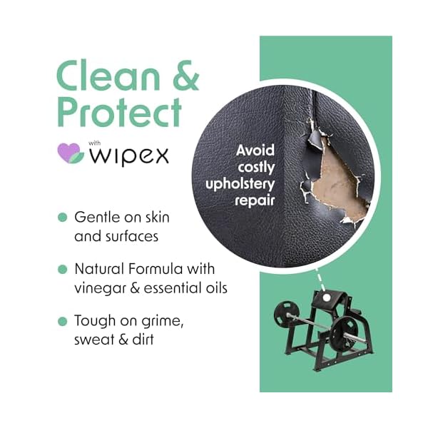 Natural Cleaning Solution: Includes Lemongrass & Eucalyptus Essential Oil and Vinegar. Wipex Fitness Wipes effectively clean gym surfaces, mats for Yoga, Wrestling and fitness equipment surfaces.