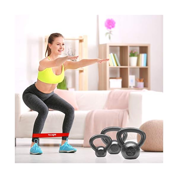 KETTLEBELLS 5, 10, 15 LBS AND BANDS SET CAST IRON: Crafted for longevity, strength training kettlebells showcase a sturdy solid cast iron construction without welds, weak spots or seam, offering consistently high performance through fitness journey